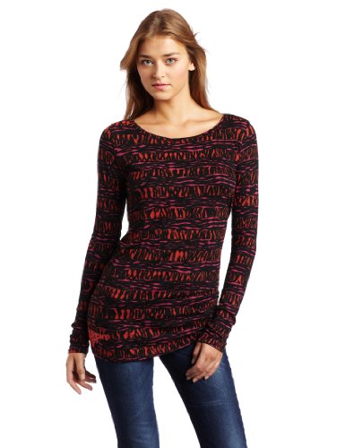 Fashion's Night Out Women's Printed Long Sleeve T-Shirt, Orange/Pink, Medium Review