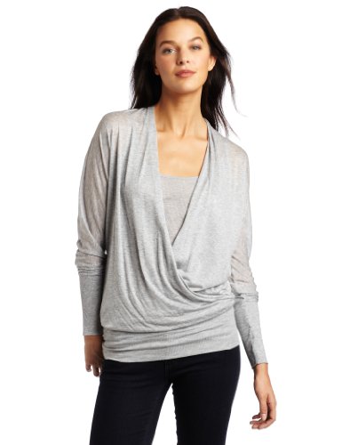 Three Dots Women's Long Sleeve Criss Cross Top, Granite, Medium Review